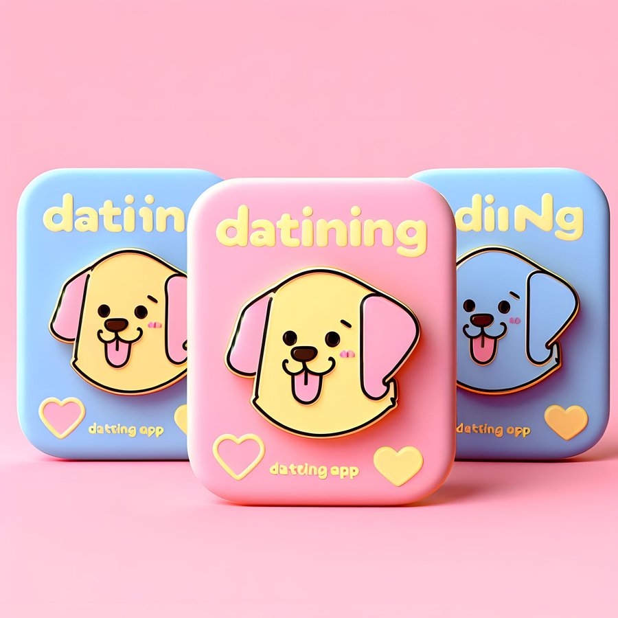 1. simple 3d minimal style logo of an app for dogs' dating, using pastel colors: pink, blue, yellow.