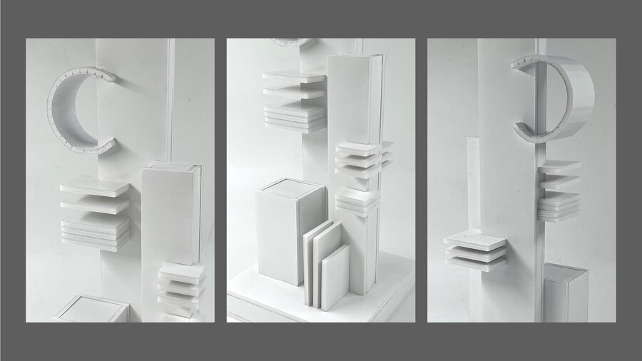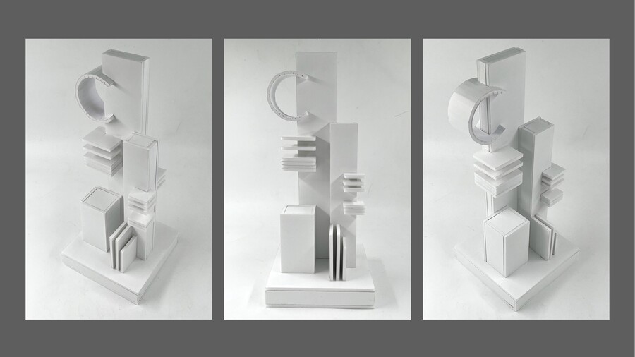 Акцент — это композиционный приём, направленный на выделение главного элемента в пространственной структуре. Он привлекает внимание зрителя, задаёт иерархию формы и помогает организовать восприятие объекта. В композиции акцент создаётся за счёт контраста. различий в масштабе, объёме, пропорциях, цвете, фактуре, или положении элементов относительно друг друга