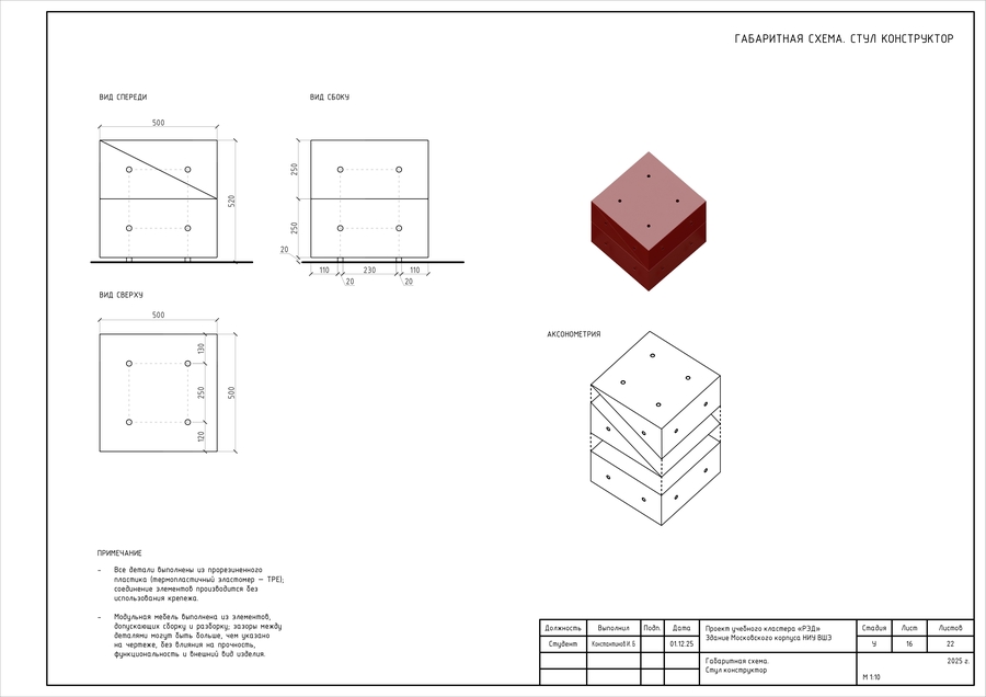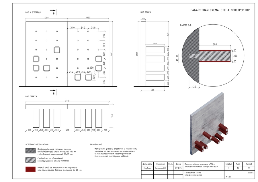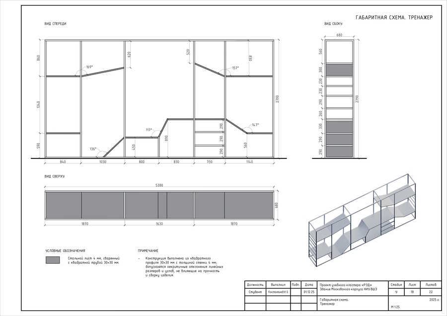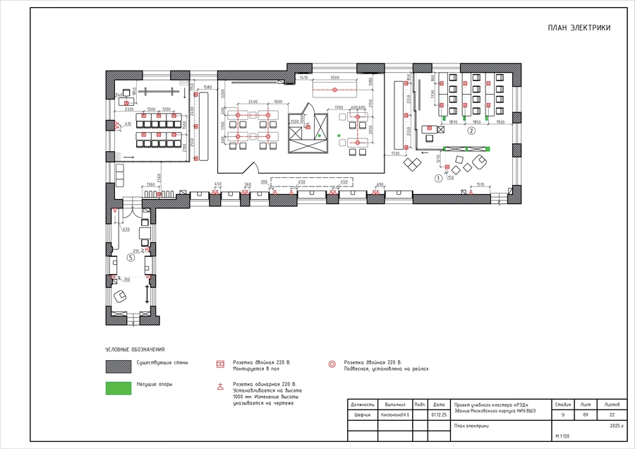 В рамках курса технологий по изучению программы AutoCAD был разработан альбом чертежей к проекту учебного кластера «РЭД».