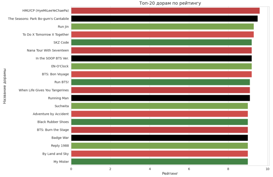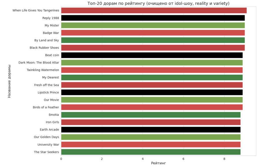 Здесь я исключала из списка шоу-реалити айдолов, чтобы оставить для анализа «Топ-20 по рейтингу» только дорамы
