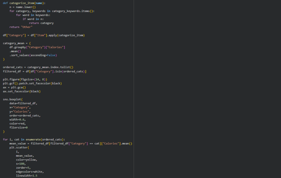 Визуализация данных позволяет взглянуть на привычное меню под другим углом и использовать количественные показатели как инструмент для более взвешенных решений в повседневном питании, показывая реальные различия между продуктами и категориями.