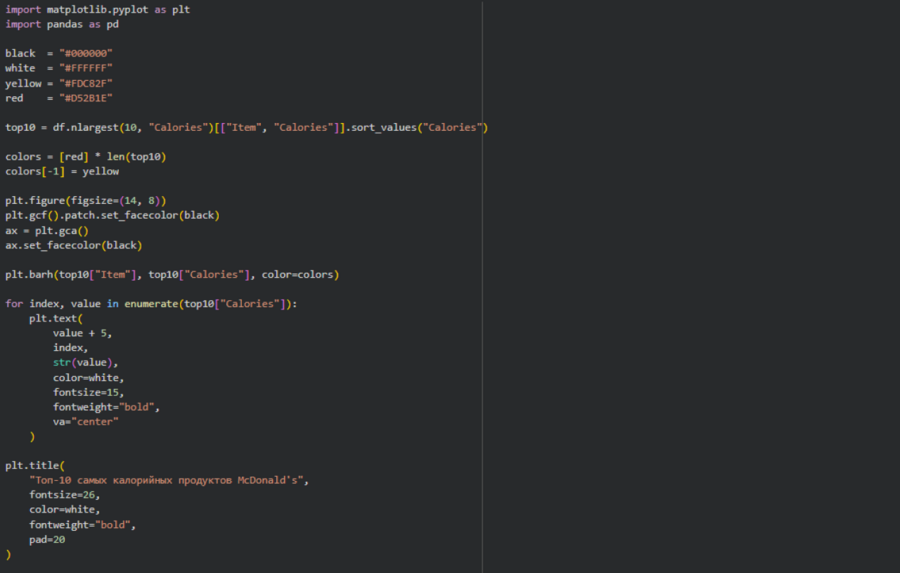 В рамках данного проекта по визуализации данных я обратилась к анализу меню сети McDonald’s с точки зрения пищевой ценности и состава продуктов.