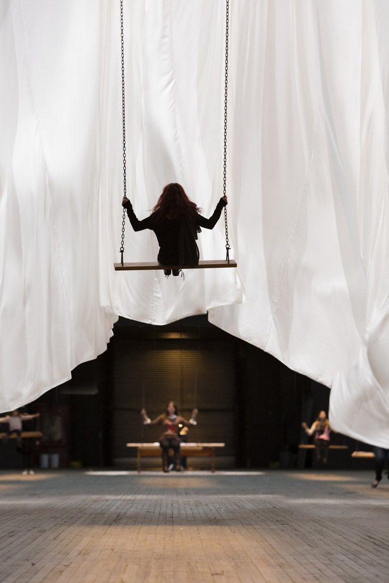 Событие в мире искусства Инсталляция Энн Гамильтон в Оружейной палате на Парк-авеню, на которых посетители раскачиваются, создавая огромный занавес. Фото: Филип Гринберг для The New York Times.