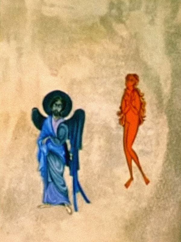 Анимации как таковой в работе мало. Кадры сменяют друг друга раз в несколько секунд. Между тем, работу (вероятно, крайне малобюджетную) двадцатитрехлетного режиссера сложно назвать минималистичной. Здесь мы начинаем видеть те элементы техники, которые лягут в основу его авторского стиля. В частности, здесь интересны трансформации [6] героев: Лилит несколько раз за ленту озаряется пламенем в кадре, в частности, в сцене слияния с антихристом: визуально это представлено через превращение фигур его и Лилит в один столб пламени. Саакянц вольно подходит к визуализации исходного материала: например, в рассказе куда больше времени посвящено тому, как Лилит избегает Адама, а позже она встречается со змием, а не с сатаной в «богочеловеческом» обличии.