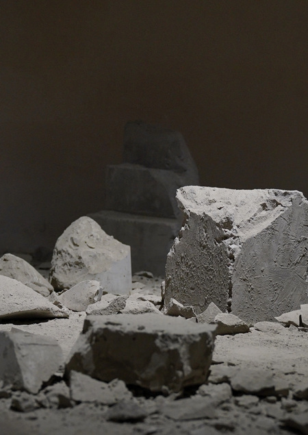 Могильный камень всем «третьим местам» — случившимся и не случившимся встречам между людьми и пространствами. Инсталляция представляет собой архитектурные останки унифицированного здания, не имеющего на себе узоров, надписей или орнаментов.