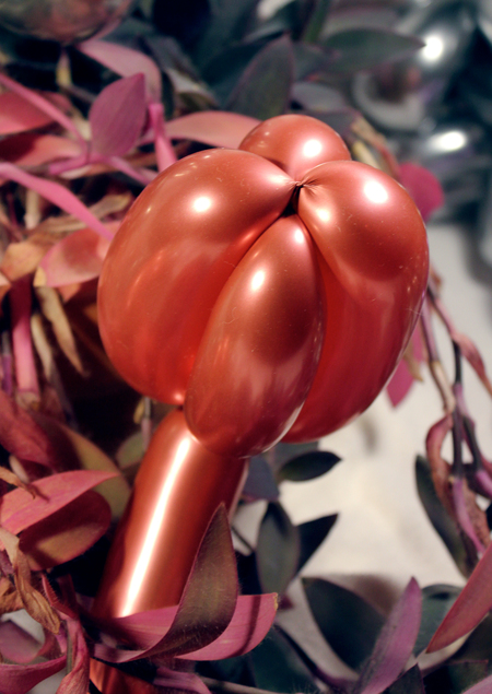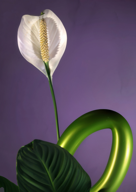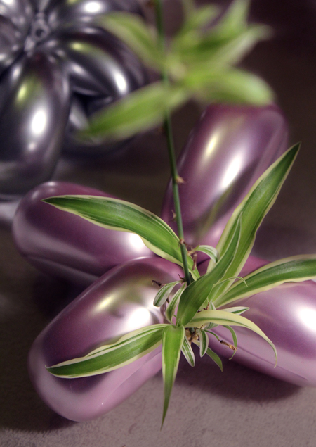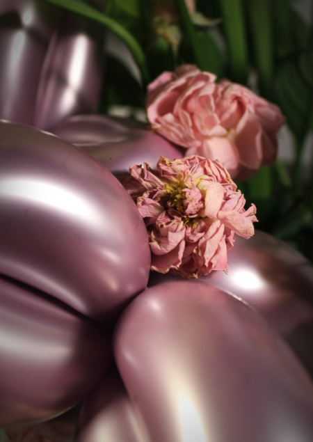 Съемка о взаимодействии природного и искусственного. Через сплетение живых растений с цветами из шаров, которые напоминают мультяшные 3D объекты, я рассуждаю о том, как легко диджитальное проникает в нашу повседневную реальность.
