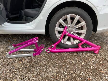 Начал с вилки и руля. Оба элемента поставил от кроссового мотоцикла honda. В обычной вилке 50мм-100мм хода. В этой -270мм. Не обошлось без пресса и токарного станка для того чтобы поставить всё это