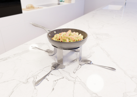Bloom Gaze можно поставить на стол во время ужина — кастрюля или сковорода в центре, а приборы лежат на лепестках. Такая подставка помогает сократить количество расходуемой посуды, а во время готовки не запачкать столешницу