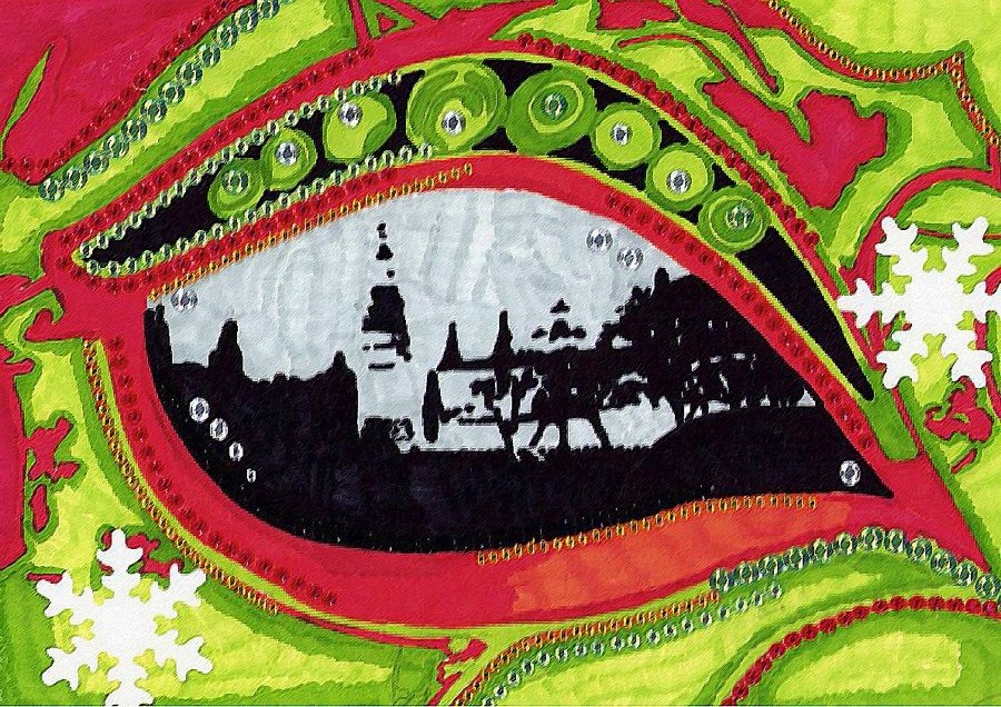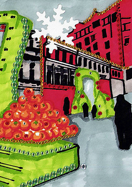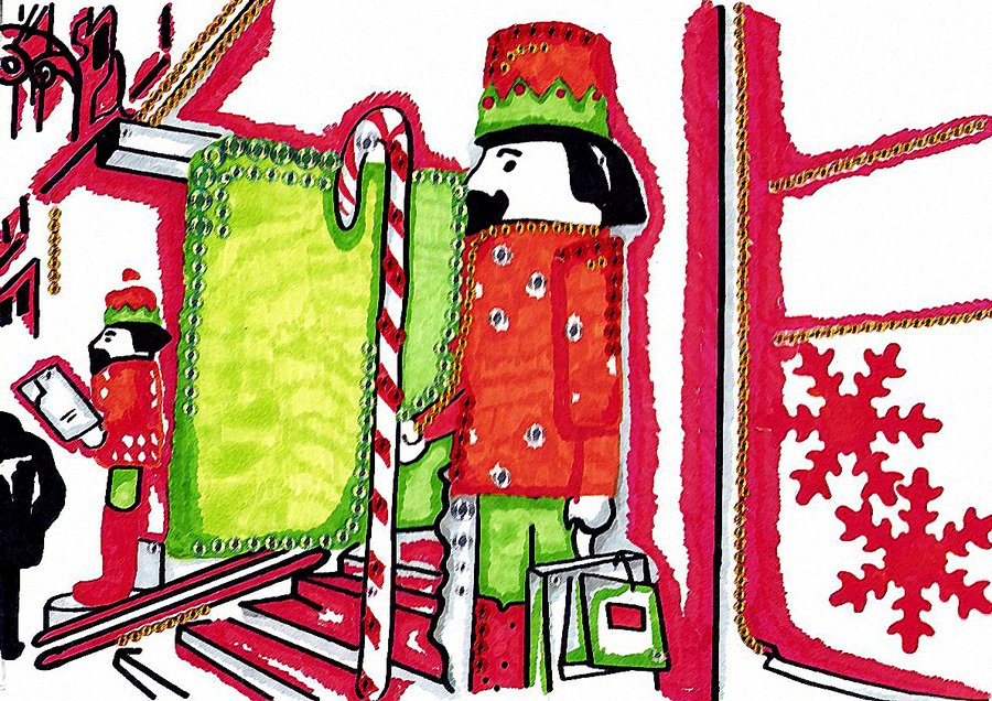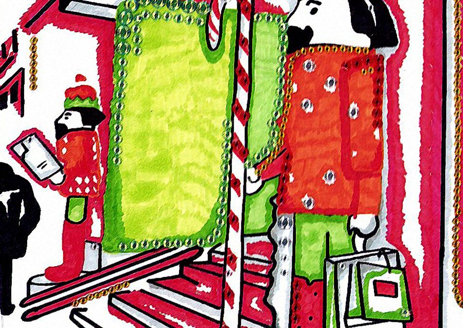 Для своей части проекта я ходила по Москве и искала новогодние места в городской среде: украшенные улицы, витрины с огоньками и все то, что передает праздничное настроение.