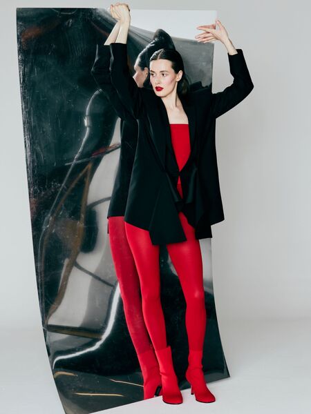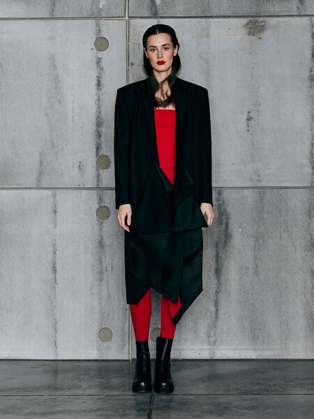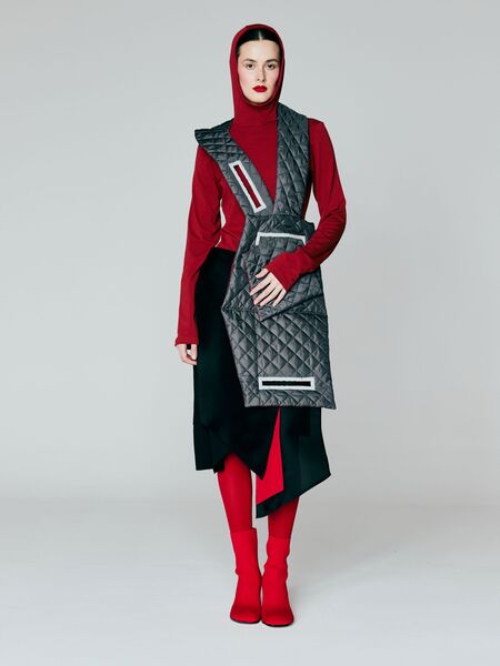 Капсула вдохновлена архивами Хуссена Чалаяна и работой Любови Поповой «Живописная архитектоника. Черное, красное, серое». Многофигурная композиция, где наплывающие друг на друга четырехугольники создают целостность образа, а цвет определяет фактуру и настроение. О чем для меня эта работа? Прежде всего о новом языке в живописи, о новом мироустройстве, в котором мы живем по сей день. Также о будущем, про которое рассказывал в своих коллекциях Хуссейн Чалаян, о его беспредметности, и вневременности.