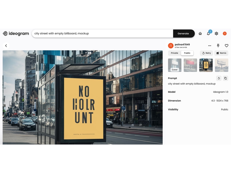 Для создания рекламного постера сгенерируем мокап и фоновую картинку, а в качестве текста используем часть ранее созданного логотипа.