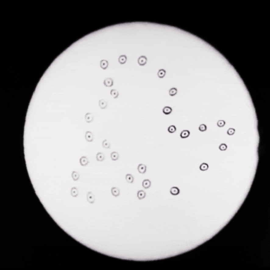Например, в работе Эмиля Коля таким объектом внимания становится микробы, которые в хаотичном танце складываются в портреты. Все эти биоморфозы происходят внутри круглого выреза рамки, отсылающей к форме отверстия микроскопа.
