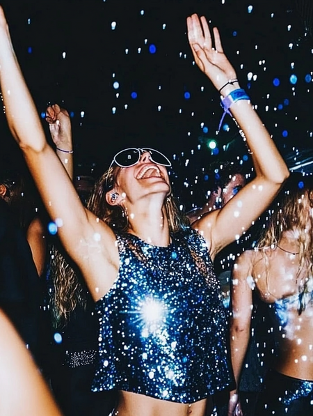 prompt: Group of friends ecstatic and dancing at an open-air electronic music festival at night. Joyful expressions, silhouettes against bright stage lights, film grain, photorealism, 8k --ar 3:4 --style raw —sref https://gochromic.hb.ru-msk.vkcs.cloud/361185450/sref/dcc3782f2fc4f9bc63a4541f7c52c9b7.png