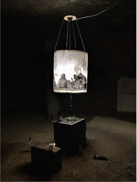 Интерактивная инсталляция представляет из себя ночник, на фоне слегка расплывчатой тайной вечери перетекают по кругу плохо очерченные тени. Вся композиция окружена музыкой, почти колыбельной, в ней слышаться звуки веселого застолья и спокойствия, металлофон играет, женский голос говорит «на небесах все хорошо»…но у всего этого нет конца и все превращается в плохой сон, на столе так же есть бутылка вина и стакан, подняв бутылку музыка останавливается, ты наливаешь вино в стакан, выпиваешь, ставишь стакан и вино на место…все циклично, у этого нет начала и конца.