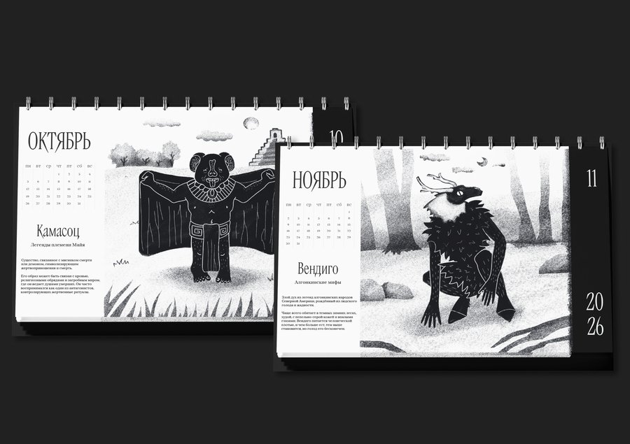 Одной из моих концепций был календарь со злыми духами из мифологий разных культур — от всем известного славянского Чёрта, до далекого Токолоша из африканских легенд. Мне удалось нащупать специфический стиль рисования, на основе которого я захотела обучить нейросеть Stable Diffusion.