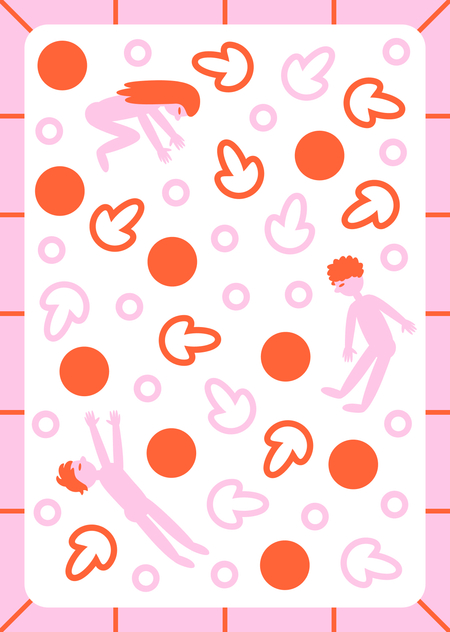 Для печати иллюстраций в технике шелкографии была взята абстрактная тема, согласно которой люди сами становятся ингредиентами в своих популярных блюдах.