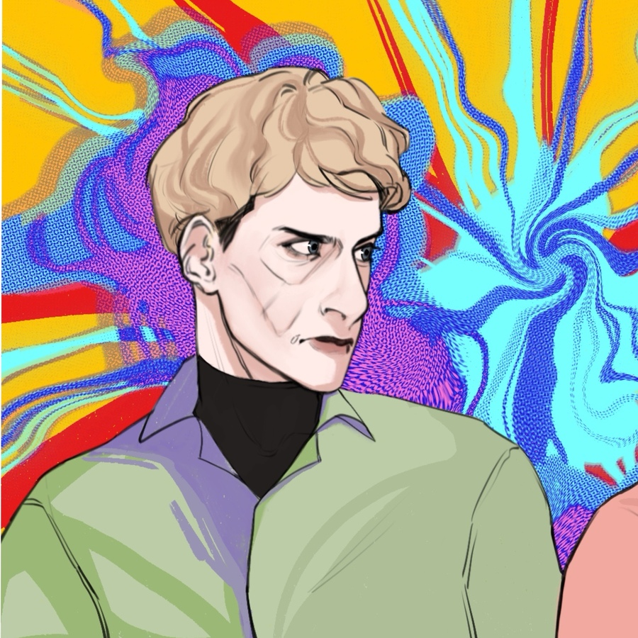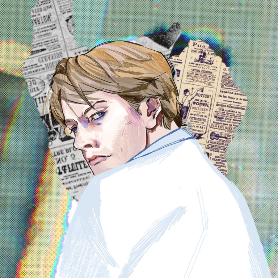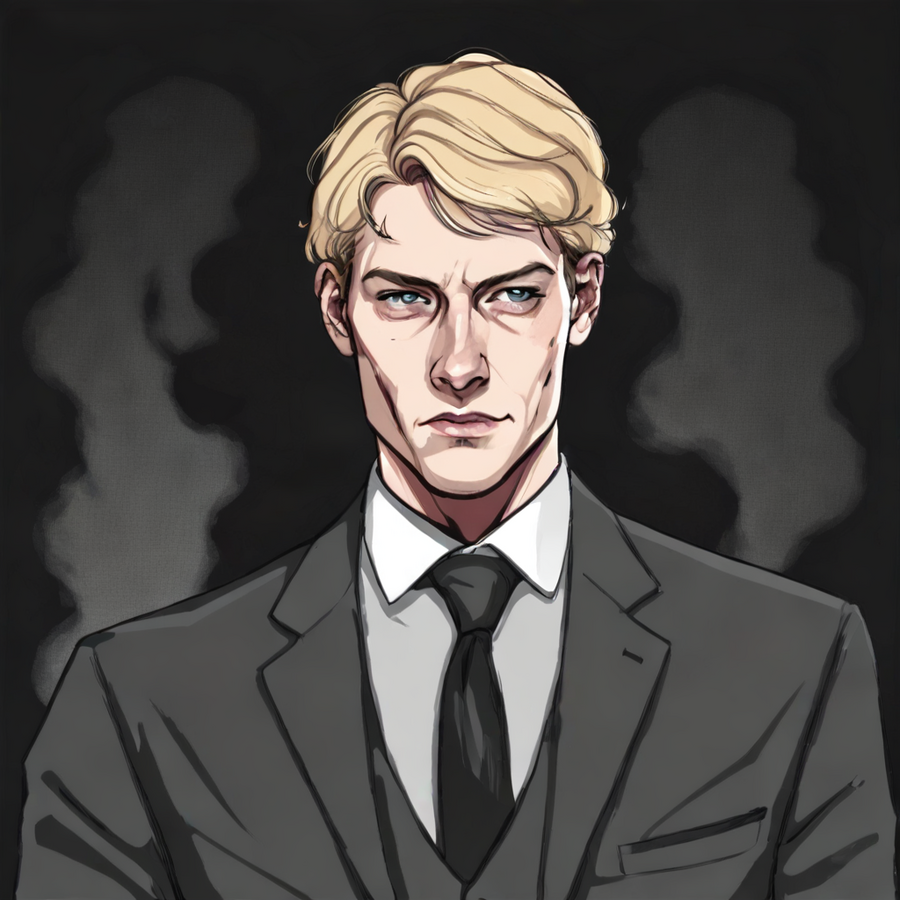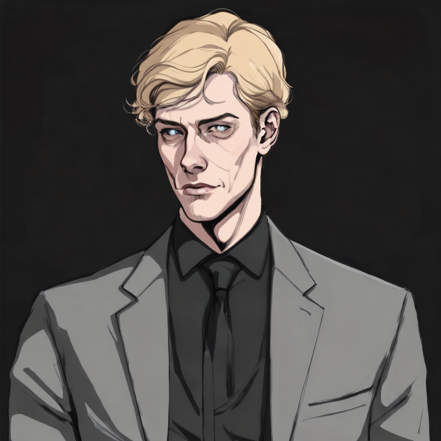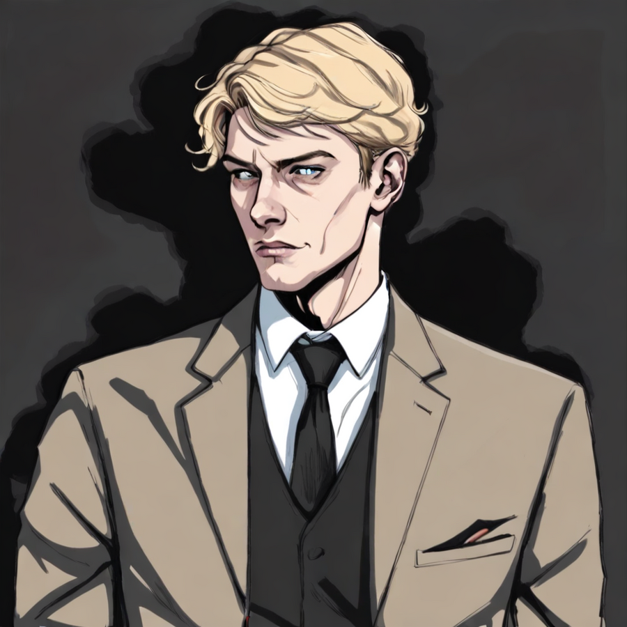 «art in MY OWN STYLE style, portrait of a blonde men in a suit black background»