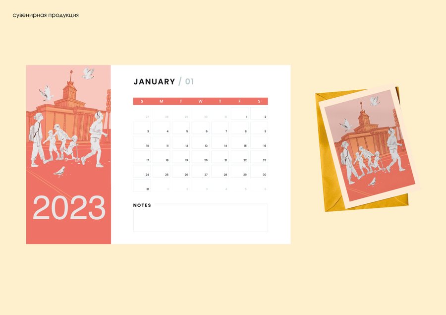 Серия из трех иллюстраций по брифу ВДНХ уносит нас вместе с москвичами и гостями города на прогулку по самым узнаваемым местам Москвы.