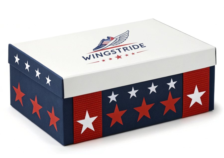 Промт для лого: «A modern vector logo on a white background for the flying sneaker store „WingStride“».