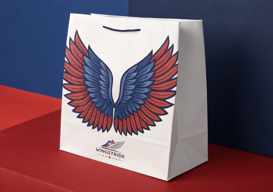 Промт для пакета: «A white paper bag with blue and red wings drawings on the sides». + наложение логотипа внутри recraft.ai
