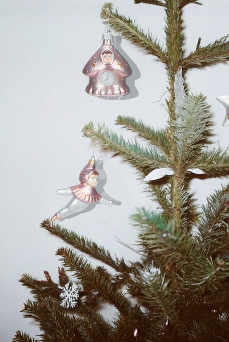 упаковка выполнена из ваты с основой из плотного картона, внутри также есть детали из ваты, отсылающие к упаковке елочных игрушек в советское время.