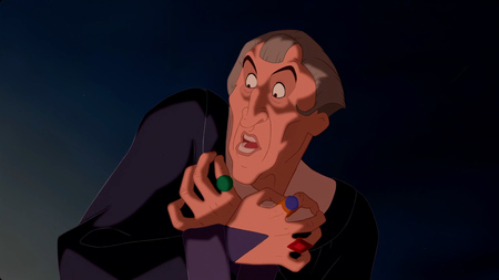 В ранее упомянутом фильме «Горбун из Нотр-Дама» 1996 г. (реж. Гари Труздейл и Кирк Уайз, студия Walt Disney Animation) разыгрывается тема с тем, что ярлык «монстра» дается не тому персонажу. Судья Клод Фролло также, как и в «Белоснежке», очевидный антагонист, но протагонист поначалу не признает его таковым. Его дизайн в некотором роде напоминает Королеву из «Белоснежки». Большим акцентом в дизайне фильма являются глаза героев — глаза судьи кардинально отличаются от живого взгляда протагониста.