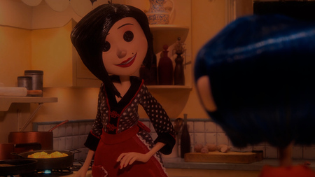 «Коралина в стране кошмаров» 2009 г. (реж. Генри Селик, студия Laika Entertainment) изначально показывает злодейку как таковую, делая ее слишком идеальным двойником настоящей мамы Коралины визуально, с единственным очевидно-неправильным элементом в виде пуговиц на глазах.