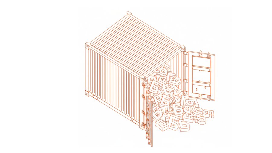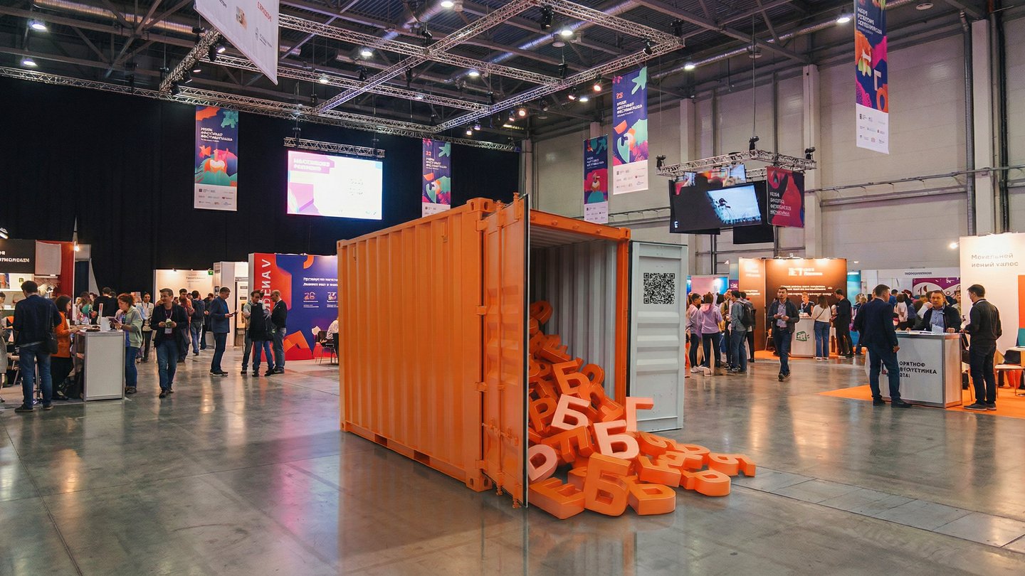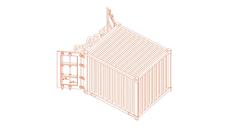 Доставка новостей — 10-футовый морской контейнер, окрашенный в фирменный оранжевый цвет «Большого Города». Внутреннее пространство заполнено объемными буквами «БГ», выполненными из фанеры — легкого материала, позволяющего создать масштабные формы. Контейнер становится символом информационного груза: как товары пересекают океаны, так и новости приходят в город — ярко, быстро, непосредственно.
