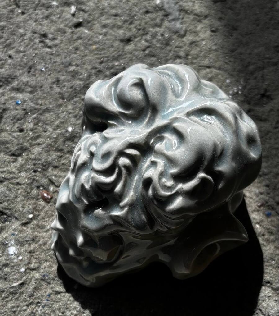 серия скульптур «сечение» это аллюзия на коронарный срез головы и тоже про страх, который оказался слабее любопытства, страх, которому смотришь глаза в глаза, но внутри дрожишь.