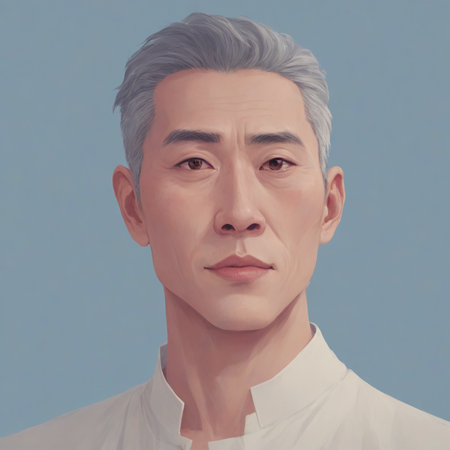 1. portrait in justinecunha style, corean man, blue background, 8k 2. portrait in justinecunha style, corean woman, blue background, 8k