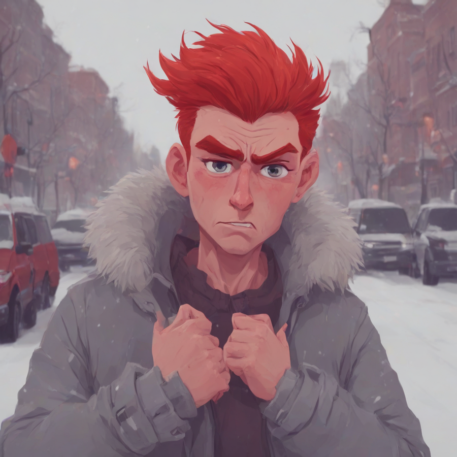 1. portrait in justinecunha style, red-haired man at the street at winter, 8k 2. portrait in justinecunha style, red-haired man, 8k, angry 3. portrait in justinecunha style, red-haired man, angry, 8k