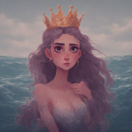 1. portrait in justinecunha style, scared princess at the middle of a sea, 8k 2. portrait in justinecunha style
