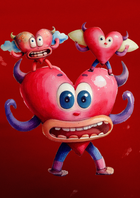Это сочетание позволило мне создать объемного и выразительного персонажа, где текстура глины добавила глубину и реализм, а рисованная иллюстрация — яркость и эмоциональность.