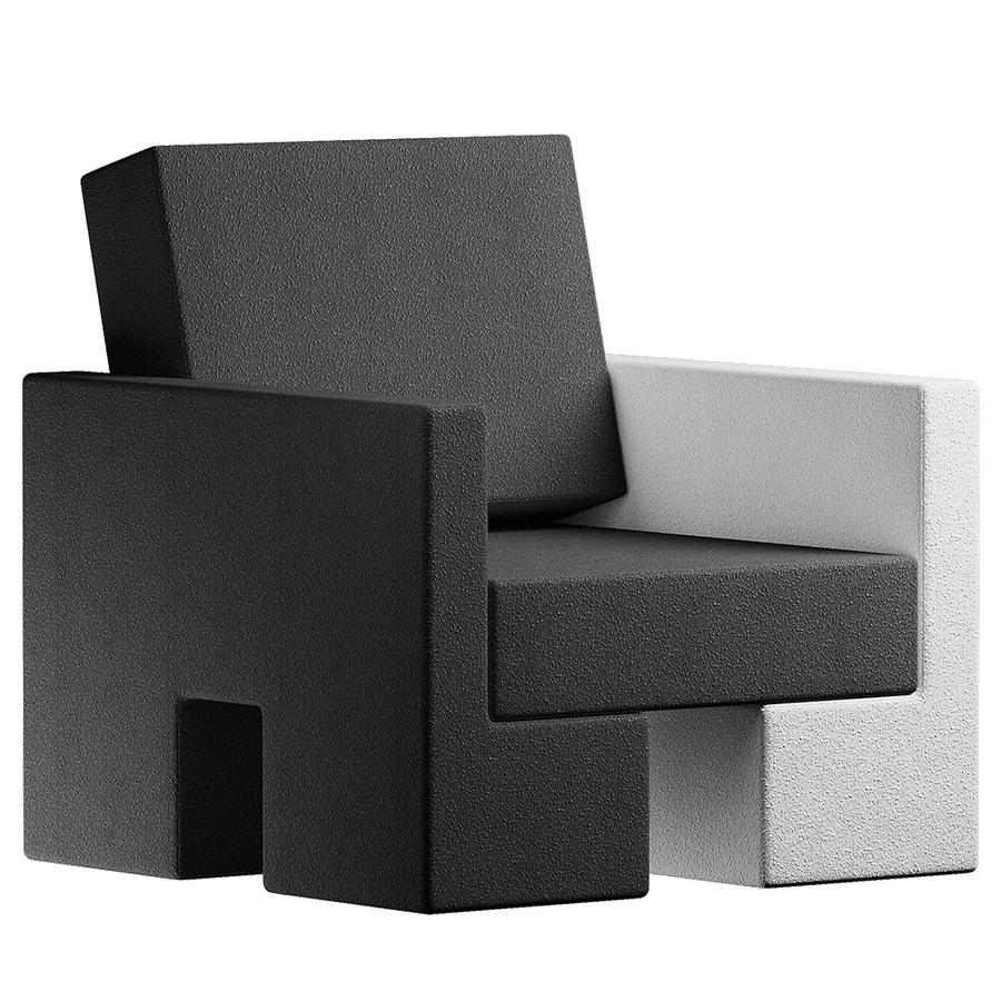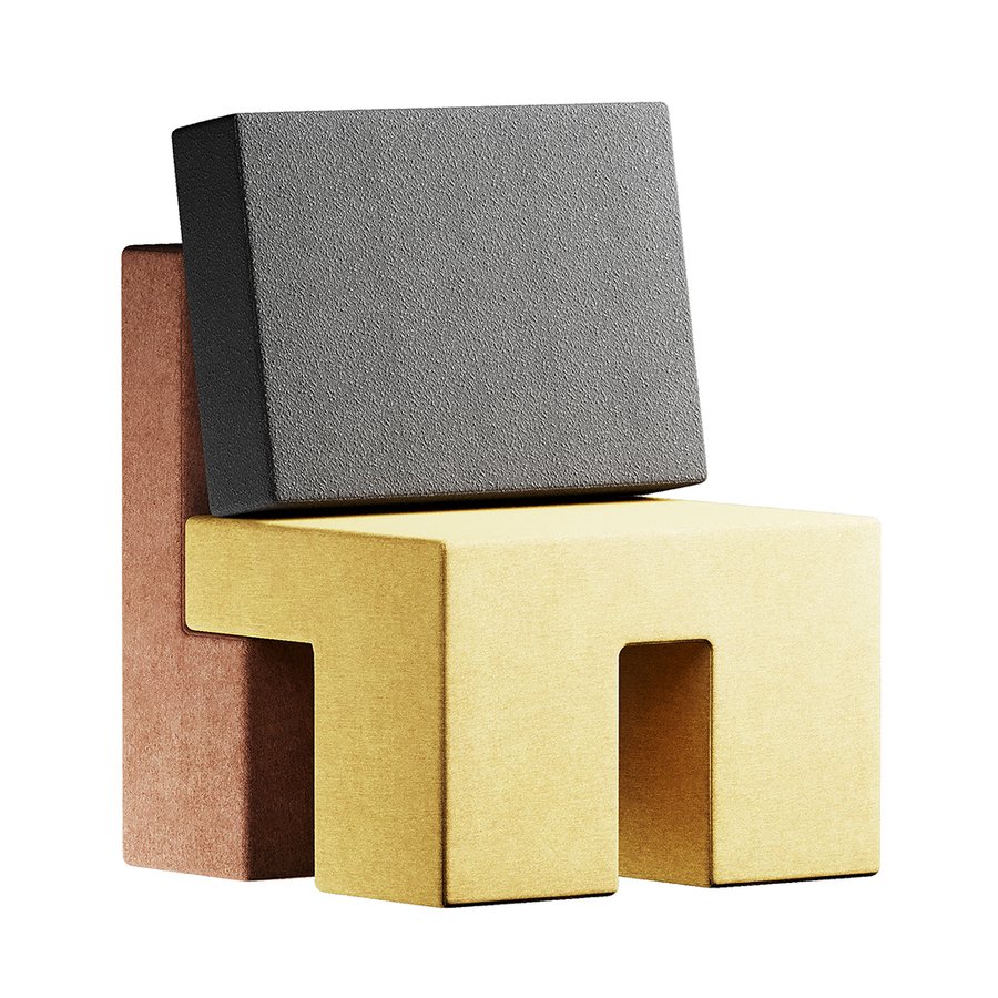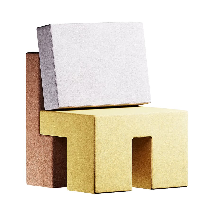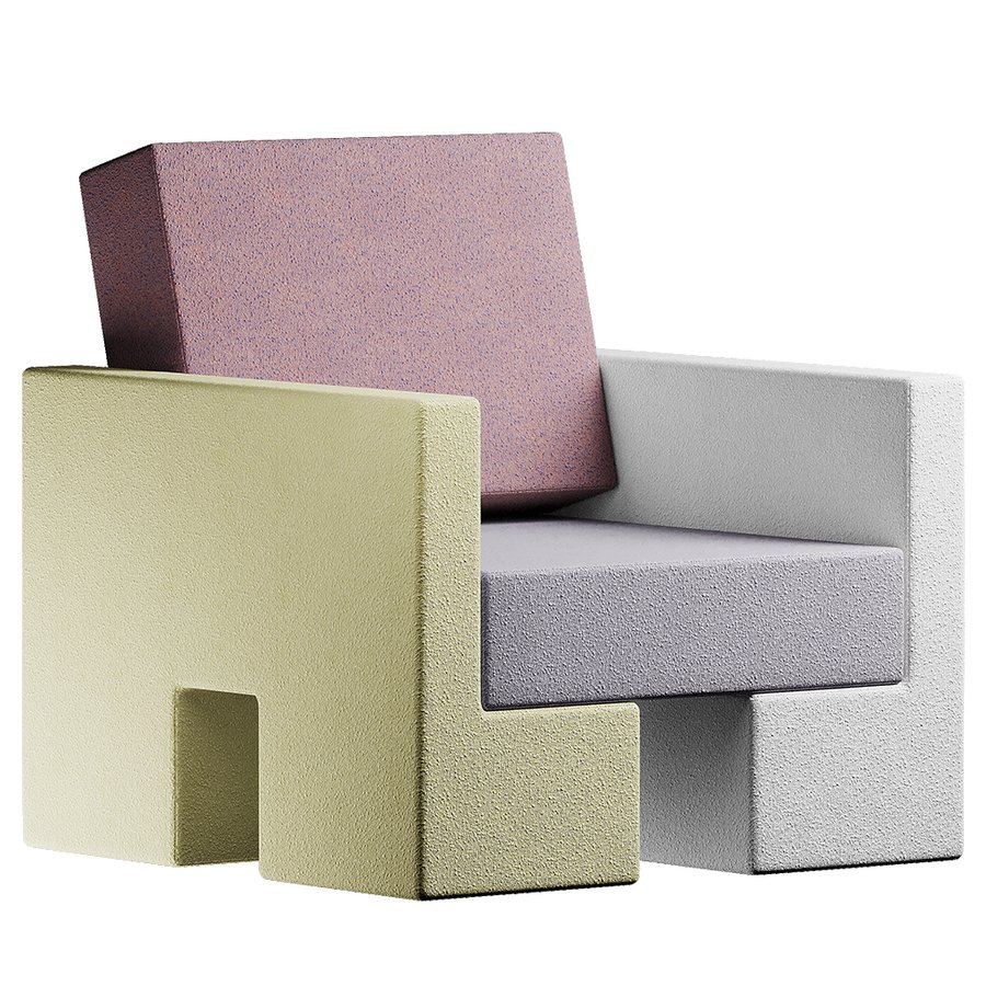 Простые, базовые формы — скорее архитектура нежели кресло предмет мебели, деление формы предлагает человеку возможность создать свой собственный уникальный предмет мебели который станет отражением его внутреннего мира.