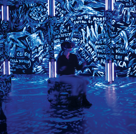 Что интересно, многие VR-работы включают в себя какое-то освоение реального пространства, хотя для зрителя по сути нужны лишь шлем и контроллеры. Пока зритель смотрит работу и взаимодействует с ней, он тоже становится тем, на кого смотрит другой зритель (тот, кто без шлема), сливаясь с созерцаемым пространством и становясь для другого зрителя практически частью инсталляции.
