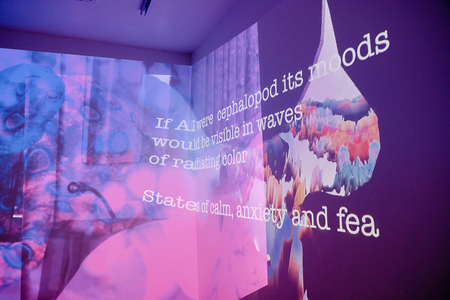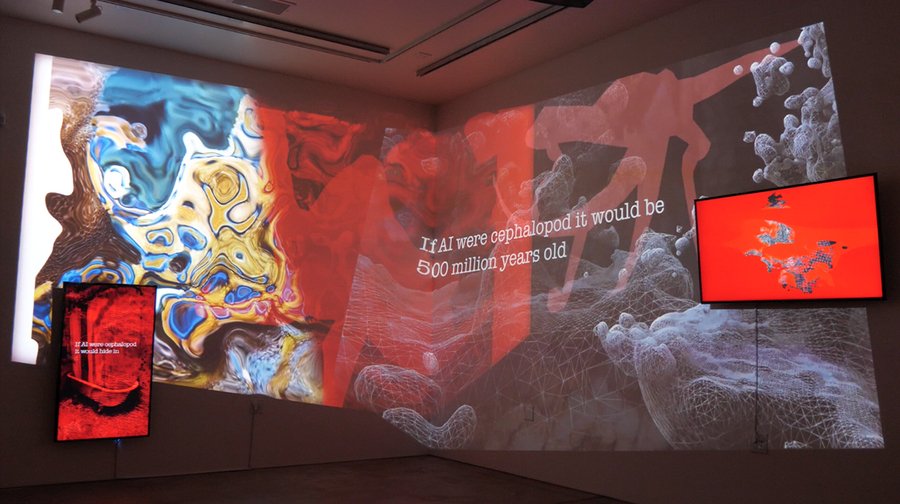 Тема искусственного интеллекта присутствует и в работах «Speculative Evolution» Марка Ли и «If AI Were Cephalopod» группы 0(rphan)d (rift>), которые выстраиваются как среда, полностью «обволакивающая» некое пространство и зрителя в нём. Окружённый гигантскими экранами, на которых демонстрируются живые организмы титанических размеров, зритель не может не смотреть на них и при этом не ощущать себя как ещё одного созерцаемого объекта.