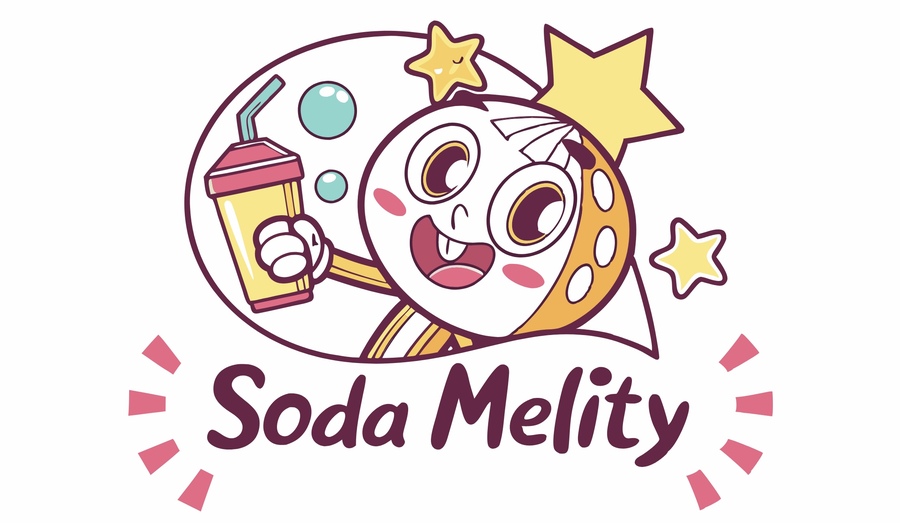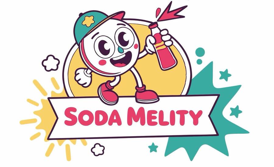/imagine prompt: a logo for company of soda for children and teenagers in a meta style with a mascot of the soda melity company