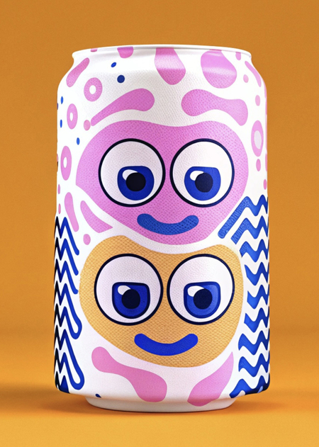 /imagine prompt: soda packaging for children and teenagers in colofrul playful meta style with a sodamelity mascot on orange background