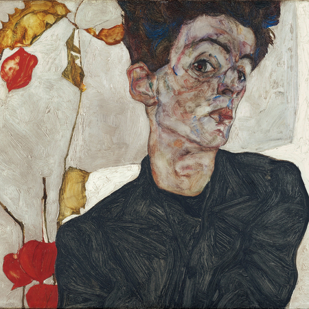 Эгон Шиле, «Автопортрет с физалисом», 1912 / «Портрет Валли», 1912