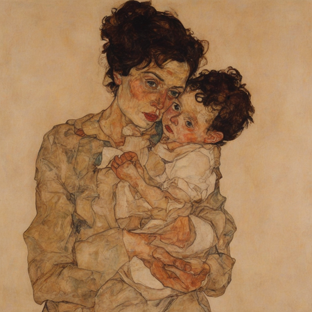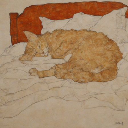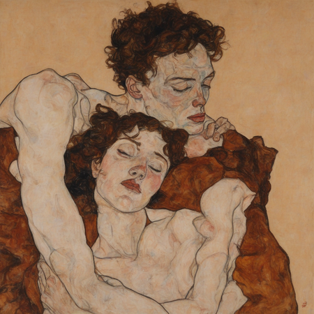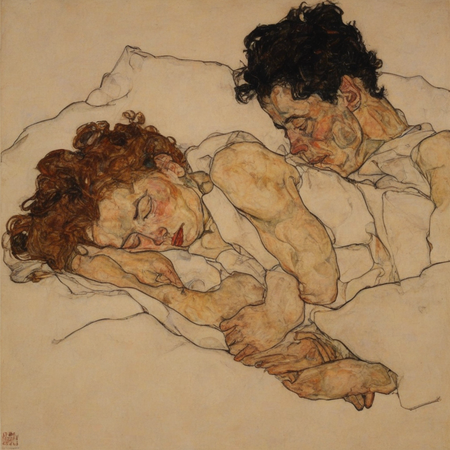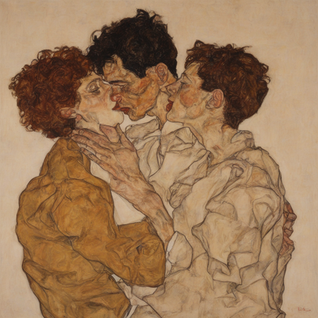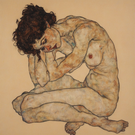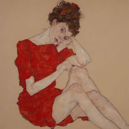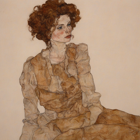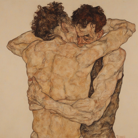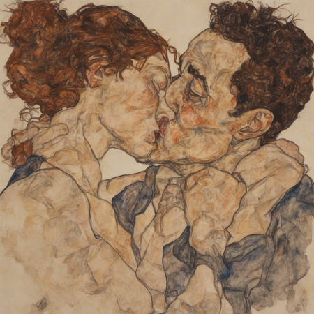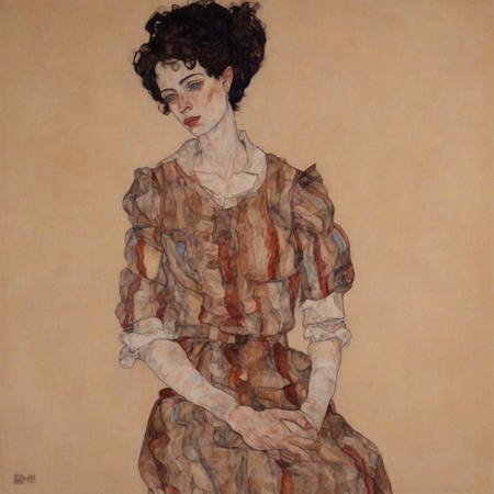 Я не поддерживаю тренировку искусственного генеративного интеллекта на основе художников и художниц, которые против этого, и считаю это неэтичным. Поэтому я предпочла тренировать модель на том, чьи мои действия никак не затронут ни морально, ни действительно. В качестве базы изображений для обучения я собрала работы Эгона Шиле, так как нахожу его работы очень экспрессивными.