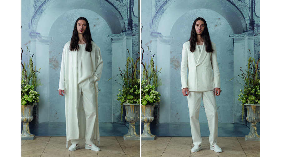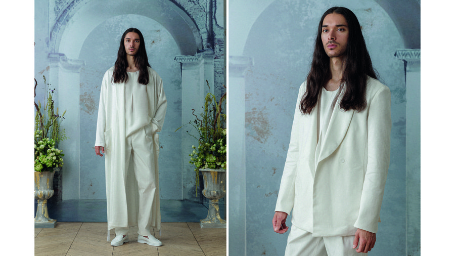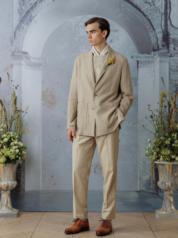 Центральной идеей коллекции стал комфорт: мягкие костюмы, в которых можно чувствовать себя непринужденно и легко в важный день. В коллекции 4 блока, которые отражают разнообразную атмосферу торжественного мероприятия. Здесь есть шелковые халаты и белоснежные костюмы для раннего утра, льняные тройки в стиле «Прованс» для свадьбы на природе, сияющая классика для празднования в формате модной вечеринки и тихая роскошь для сторонников элегантного стиля.