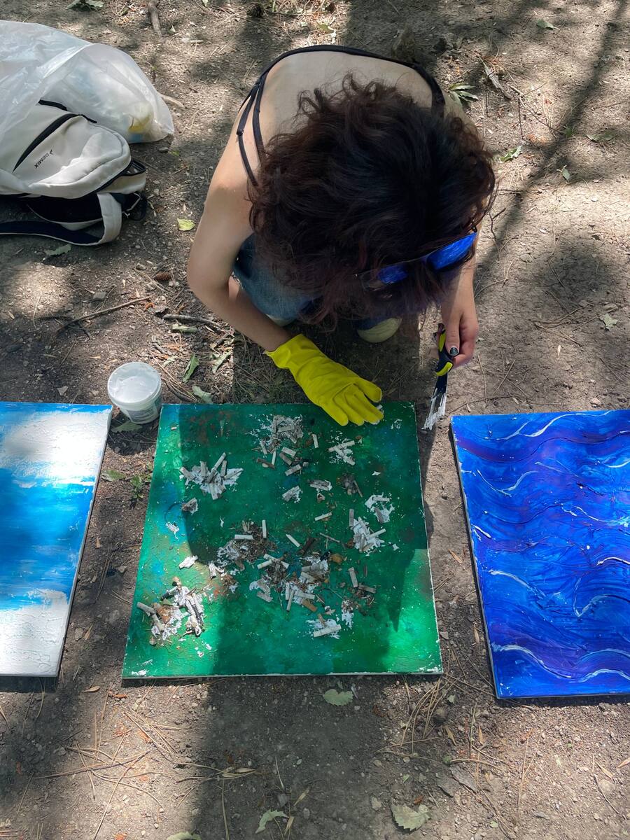 «След человека» — проект о хрупкости природы и последствиях вмешательства человека. Три стихии — вода, земля и воздух — показаны сначала в своей естественной чистоте. Затем на картинах проявляется загрязнение, символизируя разрушительное влияние цивилизации. Это не просто визуальный приём, а напоминание о том, что экосистемы не вечны и страдают в первую очередь животные.
