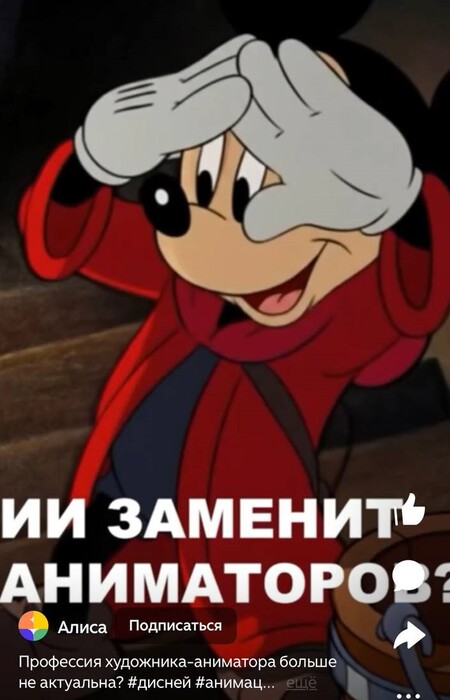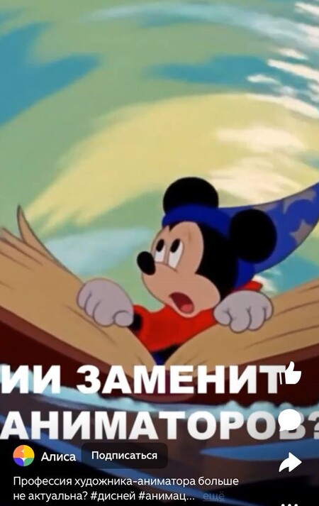 16-секундное видео «Профессия художника-аниматора больше не актуальна?» стало экспериментом по оживлению классических кадров Disney через современные ИИ-технологии. Используя VEO2, я анимировала статичные кадры из «Фантазии» и других классических мультфильмов, создав эффект современного прочтения классики. Концепция видеоконтента базировалась на провокационном вопросе о релевантности традиционной анимации в эпоху ИИ. 16 секунд позволяли показать эволюцию от рисованной анимации Disney к современным ИИ-решениям, используя анимированные кадры как визуальную метафору. Техническая реализация включала отбор ключевых кадров из «Фантазии» и других Disney-проектов, анимацию через VEO2 с сохранением стилистики оригинала, монтаж с учетом ритма музыки из исследуемых мультфильмов, а также адаптацию под вертикальный формат Дзен Видео.