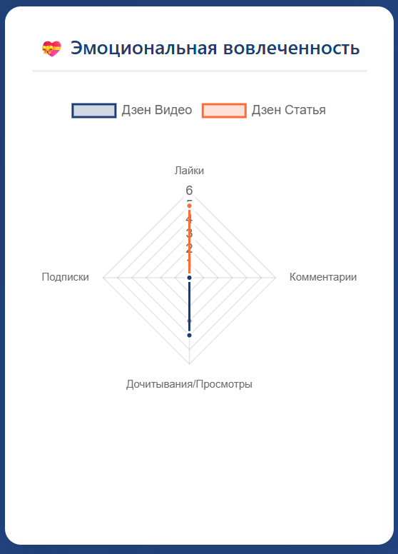 Парадокс вовлеченности заключается в том, что видео показал лучшую конверсию в просмотры (16.7% vs 10,5%), но получил нулевую эмоциональную реакцию. Это указывает на разные механизмы восприятия текстового и видеоконтента. Географическая специализация проявилась в том, что статья нашла концентрированную аудиторию в Пензе, а видео привлек более широкую, включая международную аудиторию. Это может указывать на разные алгоритмы продвижения контента. Технологический интерес оказался выше эмоционального: аудитория готова смотреть инновационный контент (ИИ-анимация Disney), но не готова эмоционально вовлекаться в провокационные вопросы о будущем профессии. Образовательная ценность против развлекательности показала, что серьезный технический анализ (статья) вызывает больше положительных реакций, чем попытки сделать образовательный контент более развлекательным (видео).