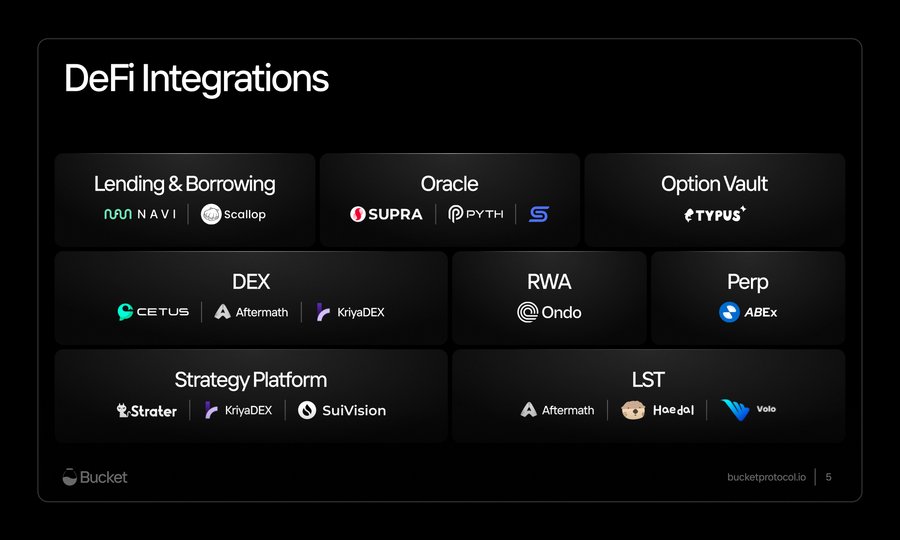 Bucket — тайваньский разработчик DeFi продуктов на блокчейне Sui. Это экосистема, состоящая из протокола, смарт-контракта и стейблкоина $BUCK, позволяющего брать взаймы и давать в долг.