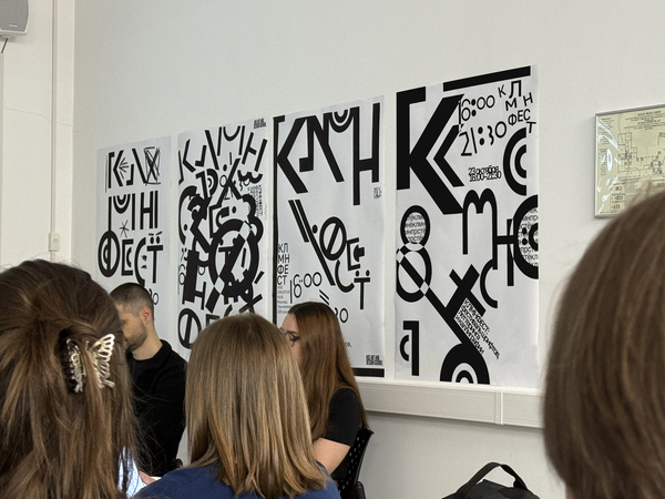На фестивале КЛМНФЕСТ состаялась выставка наших работ. Идея была в том, что каждый из группы мог привнести что-то свое в основной плакат за 5 минут, работали в фигме. Потом было принято решение распечатать промежуточные этапы каждого участника