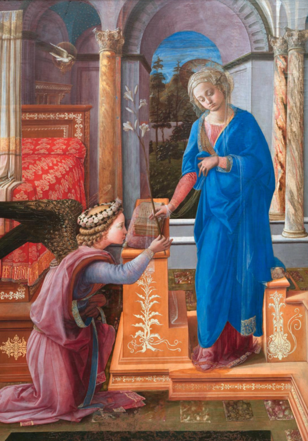 Благовещение. Ян ван Эйк 1434–1436 гг, Благовещение с двумя донаторами Фрагмент Фра Филиппо Липпи, 1445 г.
