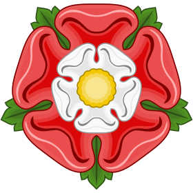 Геральдическая роза является самым распространённым цветков на гербах. Это олицетворение Девы Марии. Изображения роз на гербе в старые времена могли использовать только особы королевской крови. Все остальные довольствовались другими цветами. Роза сыграла значительную роль в феодальных междоусобицах. Так, Война Алой и Белой розы в Англии в 1455–1485 годах получила название в честь геральдического изображения. Род Йорков использовал в качестве эмблемы белую розу. Их соперники, династия Ланкастеров, изображала на своём гербе красный дамасский сорт. Впоследствии эмблемой Англии стал компромиссный вариант. Розу Тюдоров изображали с красными лепестками и белыми тычинками. Такой рисунок символизировал брак Генриха VII Тюдора, бастарда Ланкастеров, и Елизаветы Йоркской.