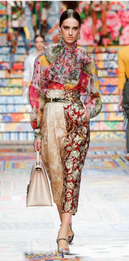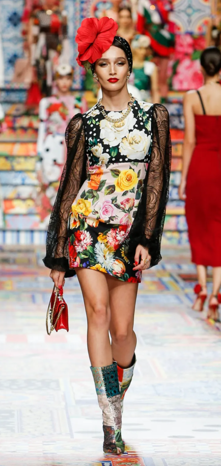 В основе эстетики бренда лежит сочетание сицилийского культурного наследия, католической образности и барочной визуальности. Цветочные мотивы отражают связь с природой Сицилии и усиливают романтичную, эмоциональную и чувственную трактовку женственности. Центральные коды бренда — дух и эстетика Италии, католическая символика и почитание Девы Марии. Все это формирует уникальный визуальный и духовный мир модного дома.