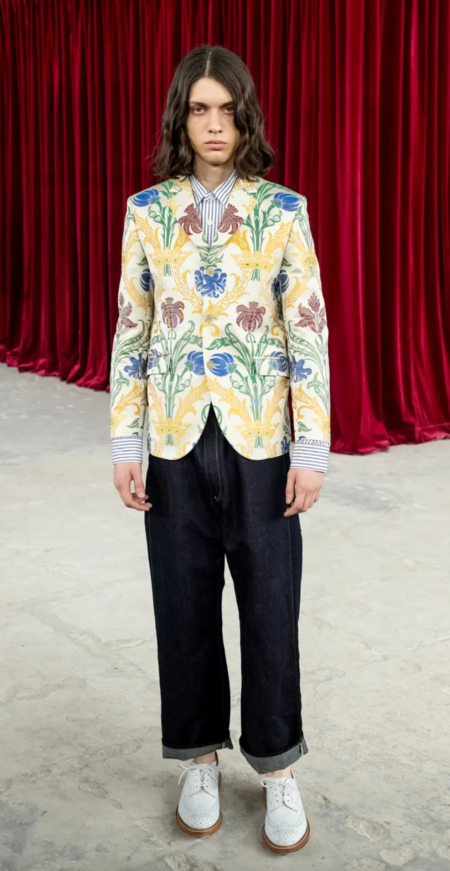 В 21 веке цветы становятся визуальным кодом новой чувствительности и инструментом пересмотра традиционной маскулинности. Появление цветочных мотивов в мужских костюмах резко контрастирует с аскетичными деловыми образами 19-20 веков. Сегодня цветок на мужской одежде не выглядит жеманно и не подрывает мужественность — напротив, он смягчает её, раскрывая образ современного мужчины как более открытого, эмоционального и свободного от прежних гендерных жестких рамок.